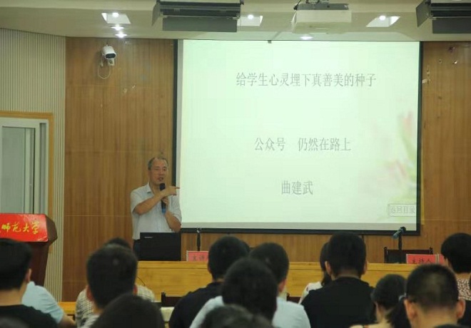曲建武为beat365学生工作者做题为《给学生心灵埋下真善美的种子》的专题报告。他以自己从辅导员到副厅长、正厅级巡视员,再做回辅导员的37年丰富经历,讲述了做辅导员的意义、幸福人生的追求、思政理论课的价值。他围绕习近平总书记在学校思想政治理论课教师座谈会上的重要讲话,要求广大辅导员政治要强,有信仰的人讲信仰;情怀要深,教育止于至善,有家国情怀;思维要新,教会学生正确的思维方法,给学生以深刻的体验;视野要广,拓展知识视野、历史视野、国际视野,把道理讲明白;自律要严,亲其师才能信其道,以身示范传递正能量;人格要正,用高尚的品格感染学生、赢得学生。报告中一段段为学生指明方向的真挚文字、一个个为学生雪中送炭的生动案例、一次次家访背后的感人故事,展示了一名辅导员的信仰和情怀,体现了一名高校辅导员在帮助学生形成正确价值观、铸就高尚灵魂过程中的重要地位和作用。