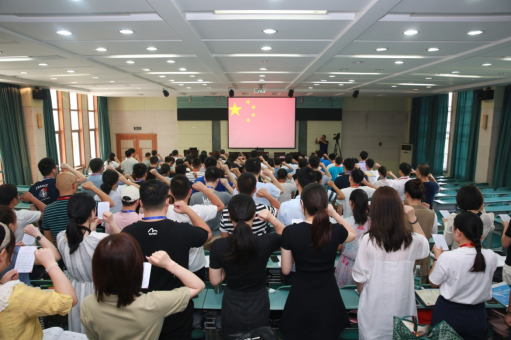 最后,全体学员在省高等学校师资培训中心副主任张韬的带领下,在鲜红的国旗下庄严宣誓,表达为教育事业贡献全部的智慧和力量的决心。