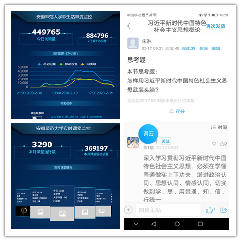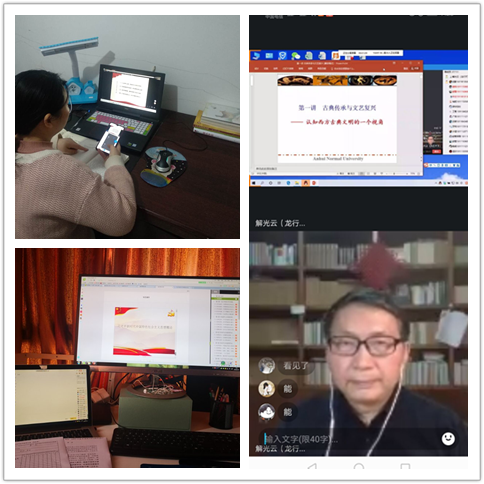 “线上教学的螃蟹好吃吗?头一次‘当主播’的体验如何?我本来是个老师,病毒把我逼成了主播。习惯了三尺讲台的老师们现在需要端坐在电脑,习惯了满堂彩,现在需要面对屏幕,老师们都有个适应期和各种担心。但是面对新模式,老师们都有直面问题的勇气,拥有坚定的信念和力量来克服这些新问题。”正如马克思主义学院高艳杰老师所说。线上教学对老师是个新命题,无论是网上平台建课还是具体操作技巧,大家都不熟悉。老师在建课过程中群策群力,延期不停教,同学们积极配合,心怀报国,延期不停学。