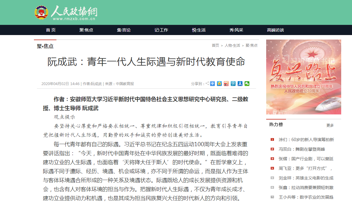 《中国教育报》2020年04月02日第5版理论周刊http://www.jyb.cn/rmtzgjyb/202004/t20200402_313360.html
