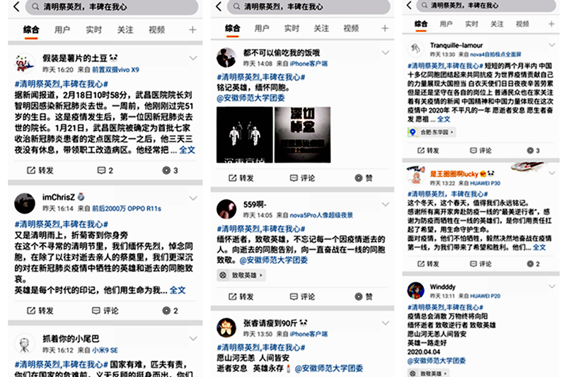 在微博#清明祭英烈,丰碑在我心#话题下,师大青年还在线传播学习心得,向英烈致敬。微博名为“阿粒aurora”的同学说,“这方土地,是由于英烈们的坚守,我们才能得以站立;这片岁月,是由于英烈们的激烈抗争,我们才得以拥抱。守护者的模样、事迹我们必将铭记于心。”微博名为“不想吃西柚”的同学说:“对烈士最好的铭记,就是前进。……他们给了我们继续前行的勇气,给予了无数人新的生命,他们是英雄,是每个人心中一座座丰碑,他们也是指引者,为我们照亮前进的方向。”