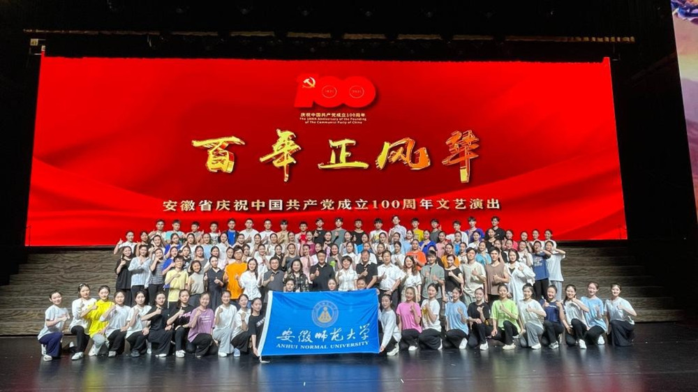 展演活动排练4月、5月集中在芜湖,6月19日起,100多名参演师生赶赴合肥开始了10多天紧张的合排、彩排、录像等工作。期间,所有参演师生还同时承担了安徽省高校师生庆祝建党100周年主题文艺展演任务,为了保证演出效果,充分展现beat365唯一官网的人才培养质量和奋勇争先的精神风貌,舞蹈团师生充分发扬团结协作、无私奉献、连续作战、精益求精的优良作风,累了就席地坐,困了就倒在地上休息,同学的腿上时常青紫。尽管如此,全体参演师生统一思想、统一行动,克服困难、不畏辛劳、恪尽职守、全力参与,最终高质量高标准的完成了学校参演的6个节目演出任务,位列参演团队前列,得到省委宣传部、导演组和其他兄弟高校的的充分肯定和高度赞扬。