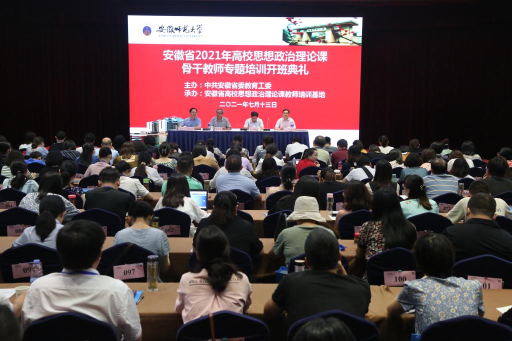 本网讯(马克思主义学院 张鑫)7月13日,安徽省委教育工委主办、安徽省高校思想政治理论课教师培训基地承办的安徽省2021年高校思想政治理论课骨干教师专题培训在beat365开班,来自省内近百所高校的400余名高校思想政治理论课骨干教师参加此次培训。