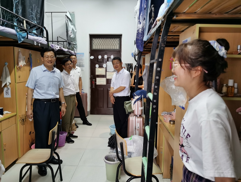 每到一间宿舍,张庆亮都与暑期留校学生亲切交流,了解他们暑期学习计划,详细询问住宿和饮食情况,对刻苦备战考研和在芜暑期实践的学生表示问候。“要做好规划,充分利用好暑期黄金时间”“要注意防暑和人身安全”“生活和学习上有什么不便和困难?一定要及时向学校反映”……耐心细致的询问、饱含真情的嘱咐,传递着学校对暑期留校学生的深切关怀。张庆亮希望留校学生合理安排时间,坚持刻苦学习、安全实践,同时注意防暑降温、劳逸结合,并祝愿同学们有所收获。他要求相关职能部门要想学生之所想,把好事办实,把实事办好,统筹安排好学生宿舍改造、调整与留校学生学习生活保障工作。