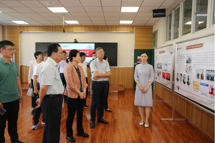 申报答辩会之前,专家组一行在校领导与相关部门的陪同下,考察了学校普通话测试站,观摩了汉字文化教学(留学生)、普通话教学、软笔书法教学和硬笔书法教学的实况,参观了学校中华传统文化体验馆,听取了基地申报的展板介绍,翻阅了基地建设的已有资料成果,对学校语言文字工作的相关情况进行了深入了解。