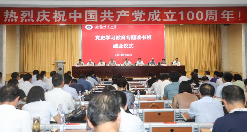 本网讯(党委宣传部 王哲谦)7月16日下午,学校在花津校区实习实训中心一楼报告厅举行党史学习教育专题读书班结业仪式,深入学习贯彻习近平总书记在庆祝中国共产党成立100周年大会上的重要讲话精神,总结盘点党史学习教育专题读书班的成绩成效,交流分享学习心得体会,动员部署下一阶段工作。校党委书记胡朝荣出席会议并讲话,校党委副书记、校长张庆亮主持会议。全体校领导、校院两级党史学习教育专题读书班学员参加会议。