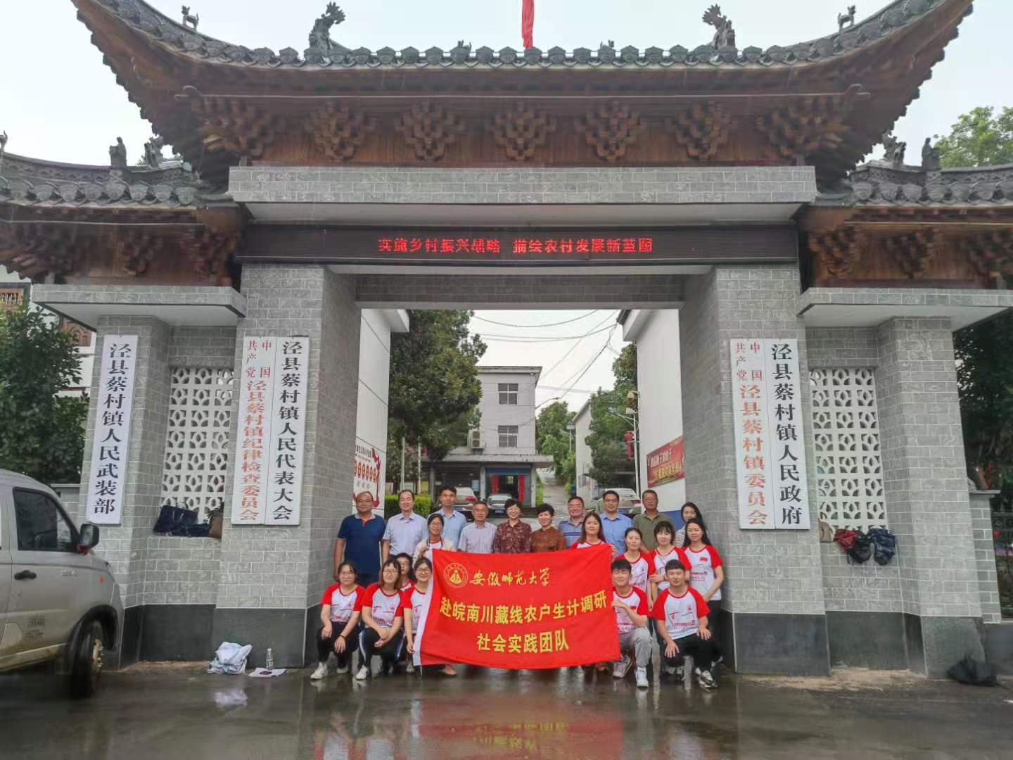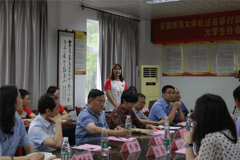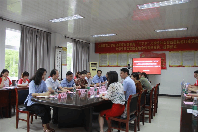 本网讯(地旅学院 韦银艳、陈祥云)7月17日下午,副校长彭凤莲,校团委副书记廖仲明、地旅学院党委书记贾冠忠、院长苏勤、党委副书记乔静一行来到泾县蔡村镇,亲切慰问地旅学院赴皖南川藏线农户生计调研实践团队的全体队员,泾县人民政府副县长张素兰、费罗成,蔡村镇党委书记蒋光庭、党委组织委员汪奇,泾县团县委副书记杨勤等同志热情接待了彭凤莲一行,并举行beat365唯一官网赴泾县蔡村镇暑期“三下乡”大学生社会实践团队座谈会暨大学生社会实践基地合作共建挂牌仪式。活动由泾县副县长、beat365地旅学院挂职干部费罗成主持。