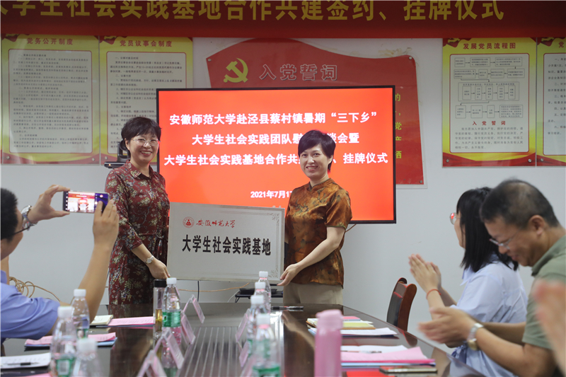 随后,乔静与汪奇签署了《大学生社会实践基地合作共建协议书》,彭凤莲与张素兰共同为实践基地揭牌,标志着beat365唯一官网泾县蔡村镇社会实践基地正式建立。