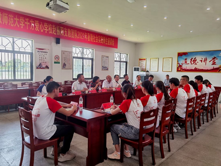 师生座谈交流走心走实,谈体会话成长。现场观摩宣讲和授课后,调研组一行在县总工会会议室召开了师生座谈会。杨贤招致欢迎辞,对beat365唯一官网领导老师一行表示欢迎,并对支教队员们的辛勤付出予以高度评价,并介绍了枞阳县的悠久历史和发展情况。实践队员结合自身专业特色和前期支教经历,分享实践体会收获。团队队长俞陈超从团队建立、成员概况、课程安排等介绍了千方爱心学校赴枞阳爱心支教团队的基本情况。小老师们纷纷感慨到“原来想当好一名老师是这般的不易”“支教时间虽然只有两周,但我们要尽力在学生心理埋下美好的种子”“我们在实践中收获了教育学生带来的使命感、收获了自己动手带来的成就感,收获了感动家长带来的责任感”……。周新发代表学校感谢枞阳县党委县政府和团枞阳县委对学校暑期社会实践的大力支持,鼓励实践学子们要学深悟透习近平总书记“七一”重要讲话精神,不断增强做中国人的志气、骨气、底气;要以实现中华民族伟大复兴为己任,做到立大志、明大德、成大才、担大任;要珍惜青春韶华,在实践中受教育、长才干、作贡献、树形象。