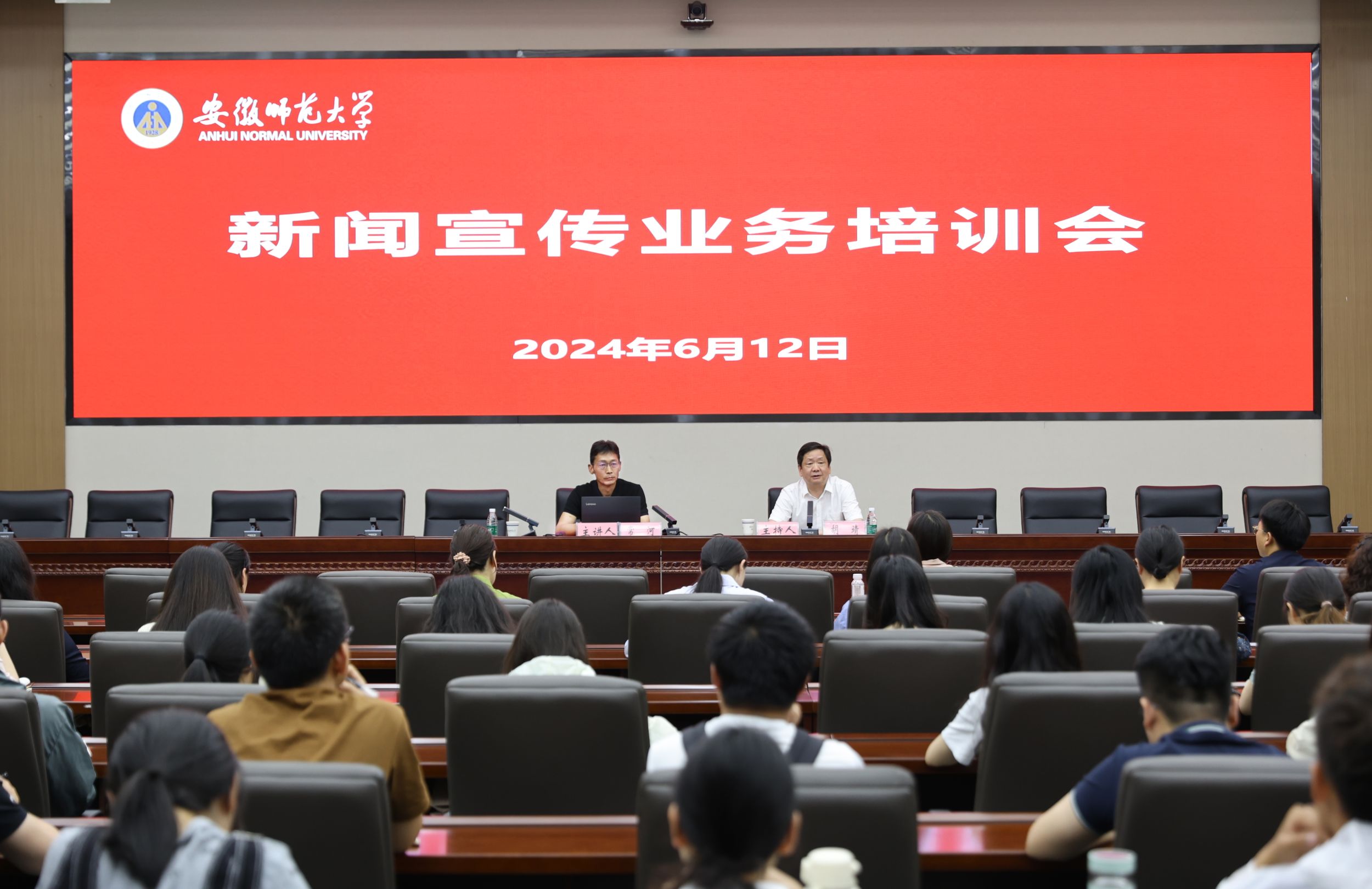 为进一步加强beat365新闻宣传队伍建设,提高宣传队伍的业务能力,6月12日上午,学校特邀beat365特聘教授、《光明日报》安徽记者站站长、高级编辑常河来校为师生开展新闻宣传业务培训。培训会在文典楼东侧裙楼三楼视频会议室举行,校党委副书记胡靖主持培训会。学校各院级党组织、各部门、各单位负责新闻宣传工作的宣传员老师和学生代表,党委宣传部大学生记者团成员,新闻与传播学院师生代表参加培训会。